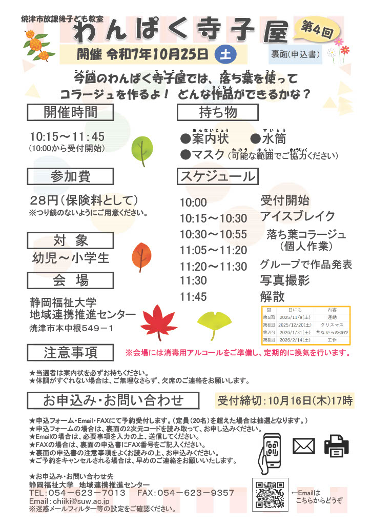 3.  >  10月25日(土) 第4回わんぱく寺子屋を開催します!