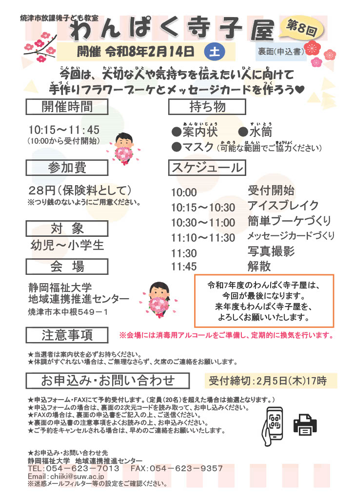 【今年度最終回!!】2月14日(土) 第8回わんぱく寺子屋を開催します!
