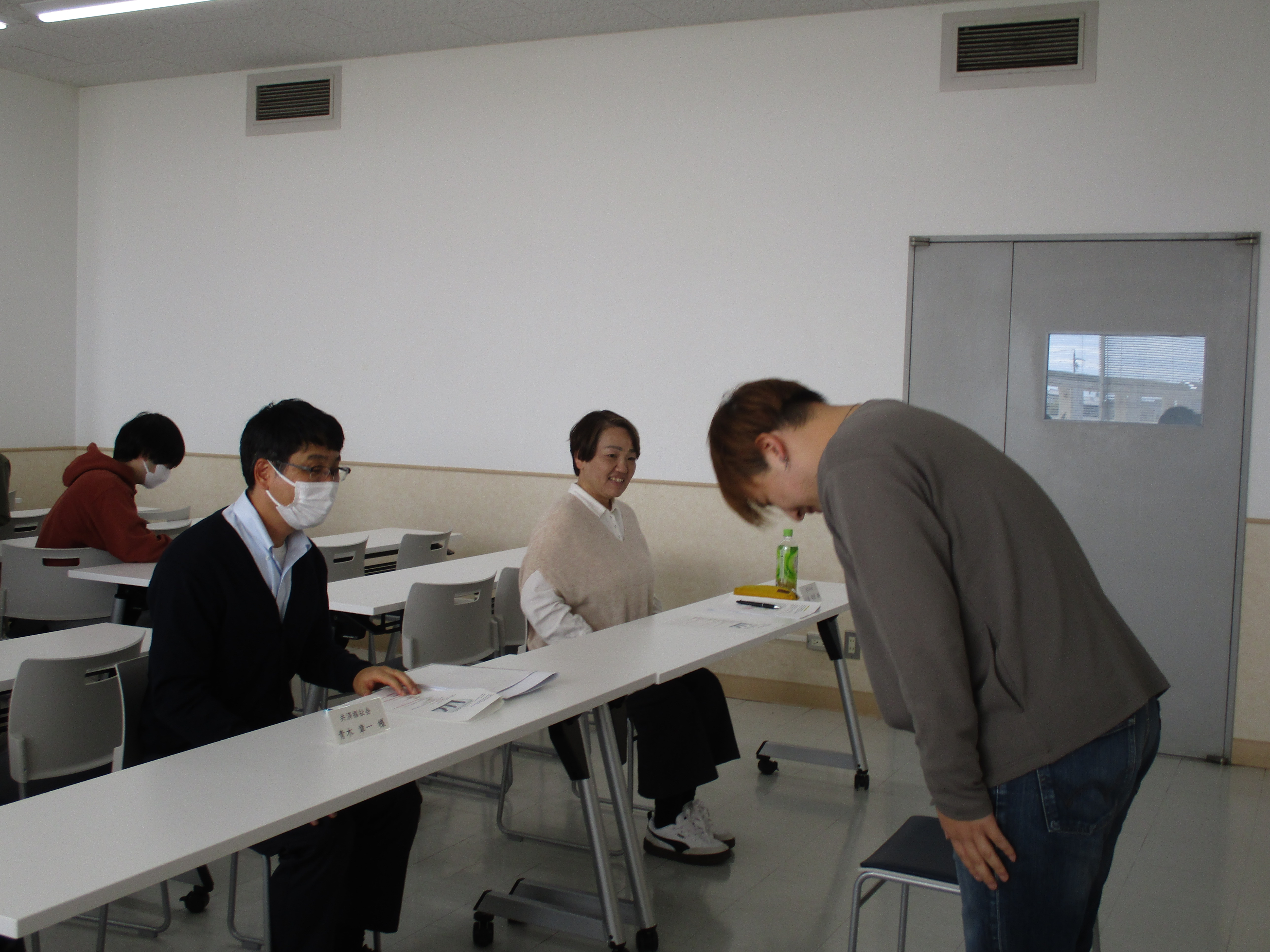 福祉施設の方に面接官を担当していただき、3年生は集団面接と個人面接の練習を行いました。