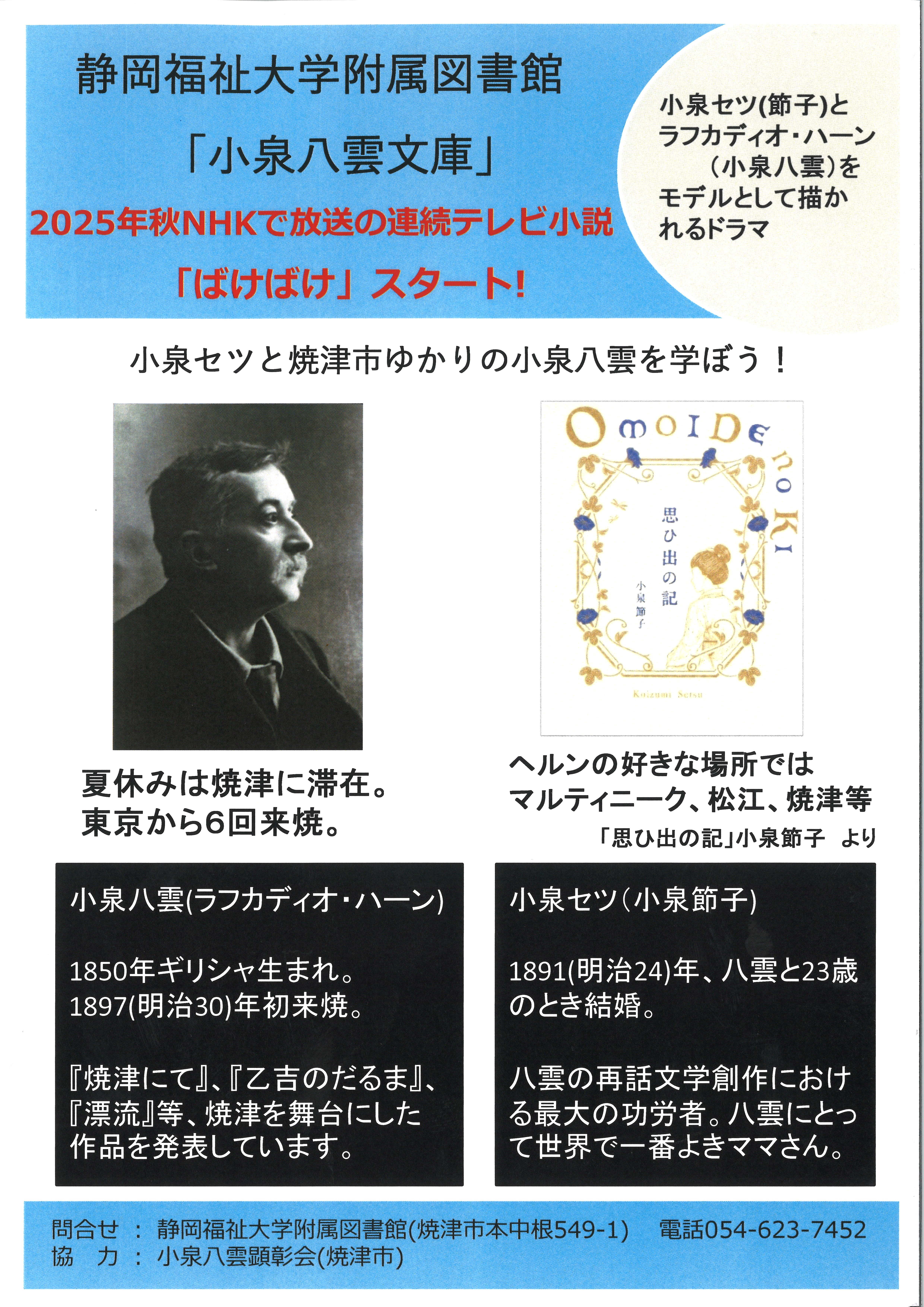 焼津市ゆかりの小泉八雲を学ぼう!連続テレビ小説「ばけばけ」の楽しさをここで倍増 !
