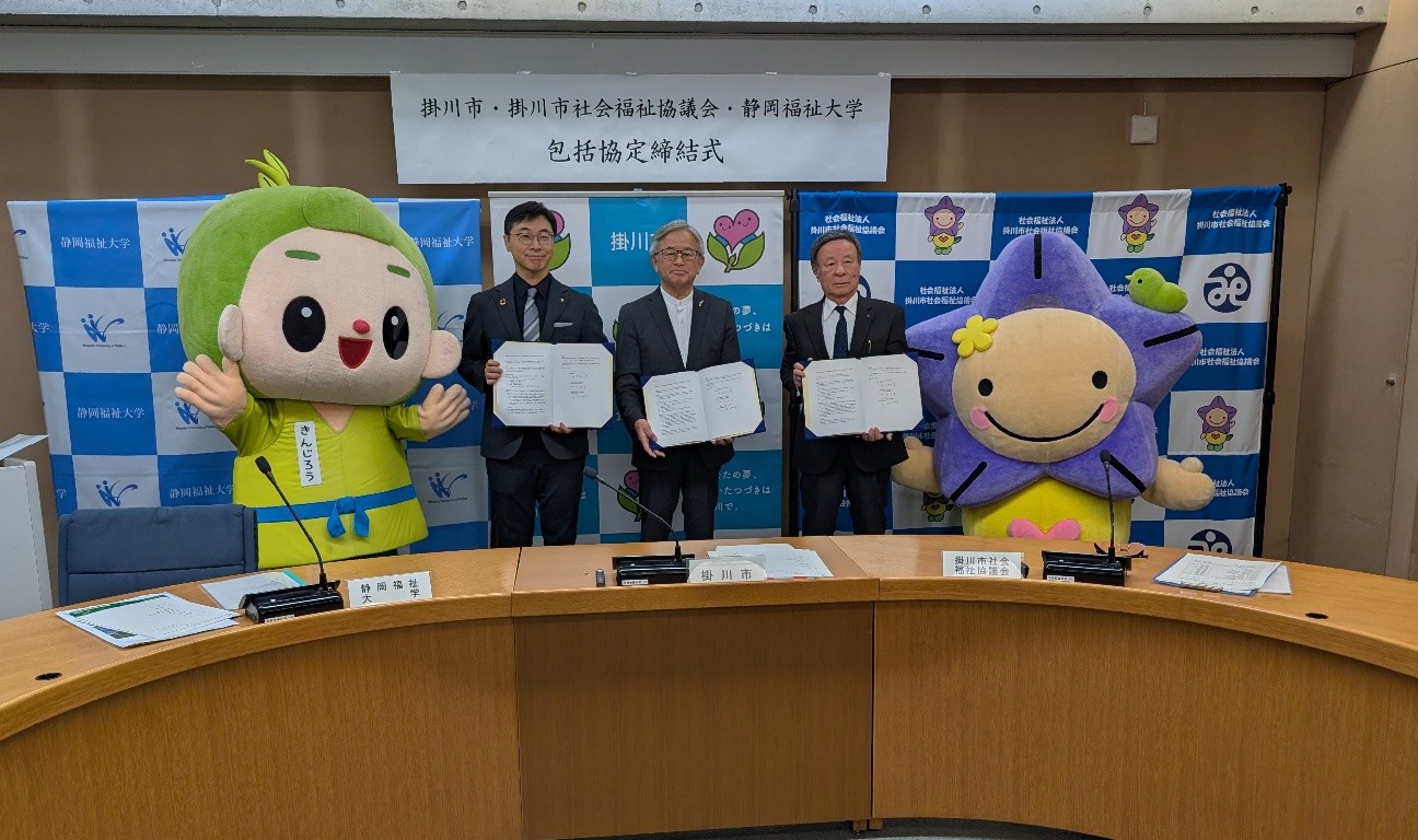 令和8年2月17日(火)、掛川市役所において、「掛川市・掛川市社会福祉協議会と静岡福祉大学との包括連携に関する協定」締結式を執り行いました。